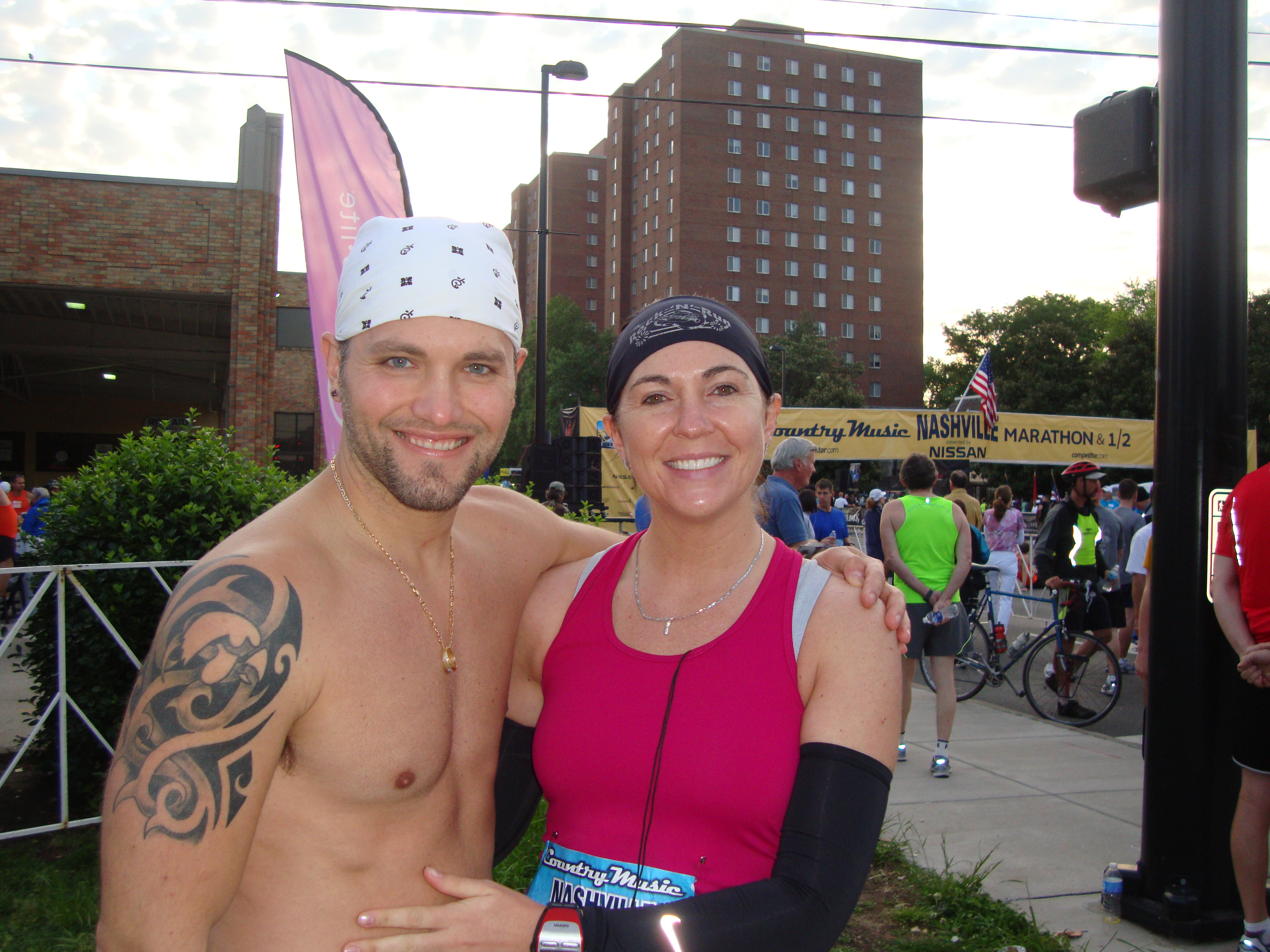 My hubby and I at some of our races. The first Quad City half we did way back when and a few years ago at St.Louis Full. We both got our best times at this race- Me 3:53 and Benji 3:51!
