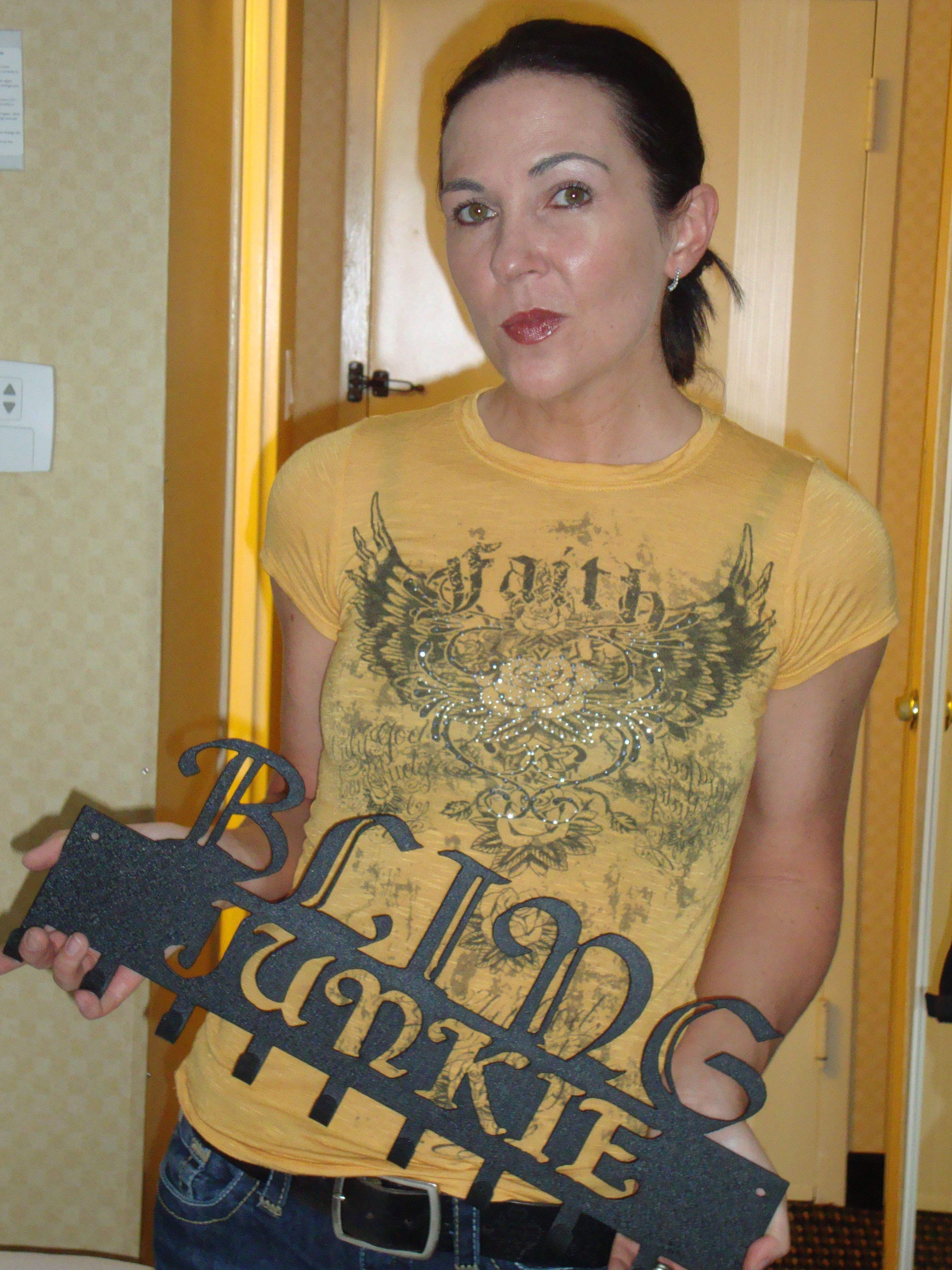 My Bling Junkie hanger for all my medals! I love this saying too, its on the back of a shirt I bought at one of the expo’s.